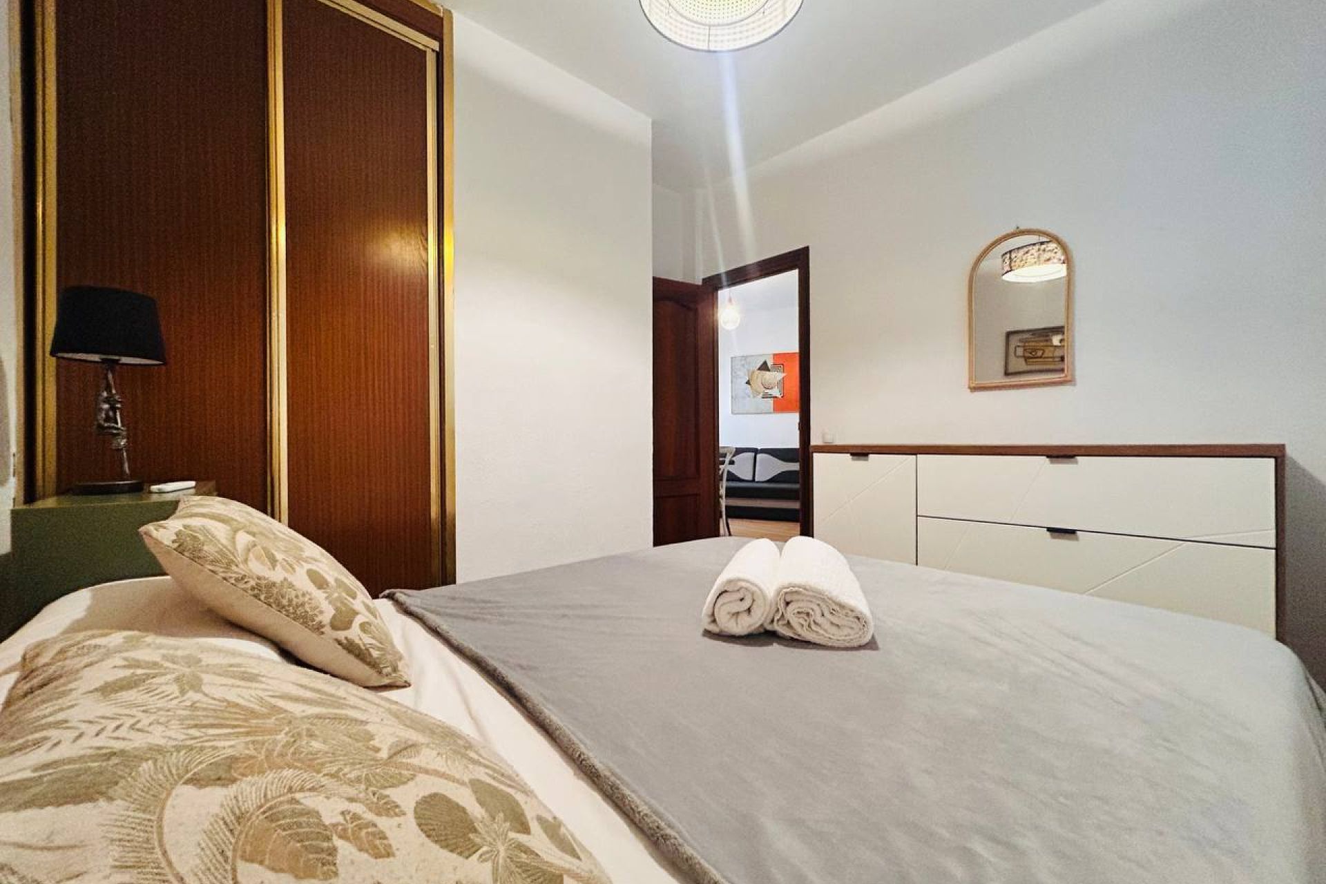 Bright, interior-facing two-bedroom apartment, 1 minute from Gran Vía.