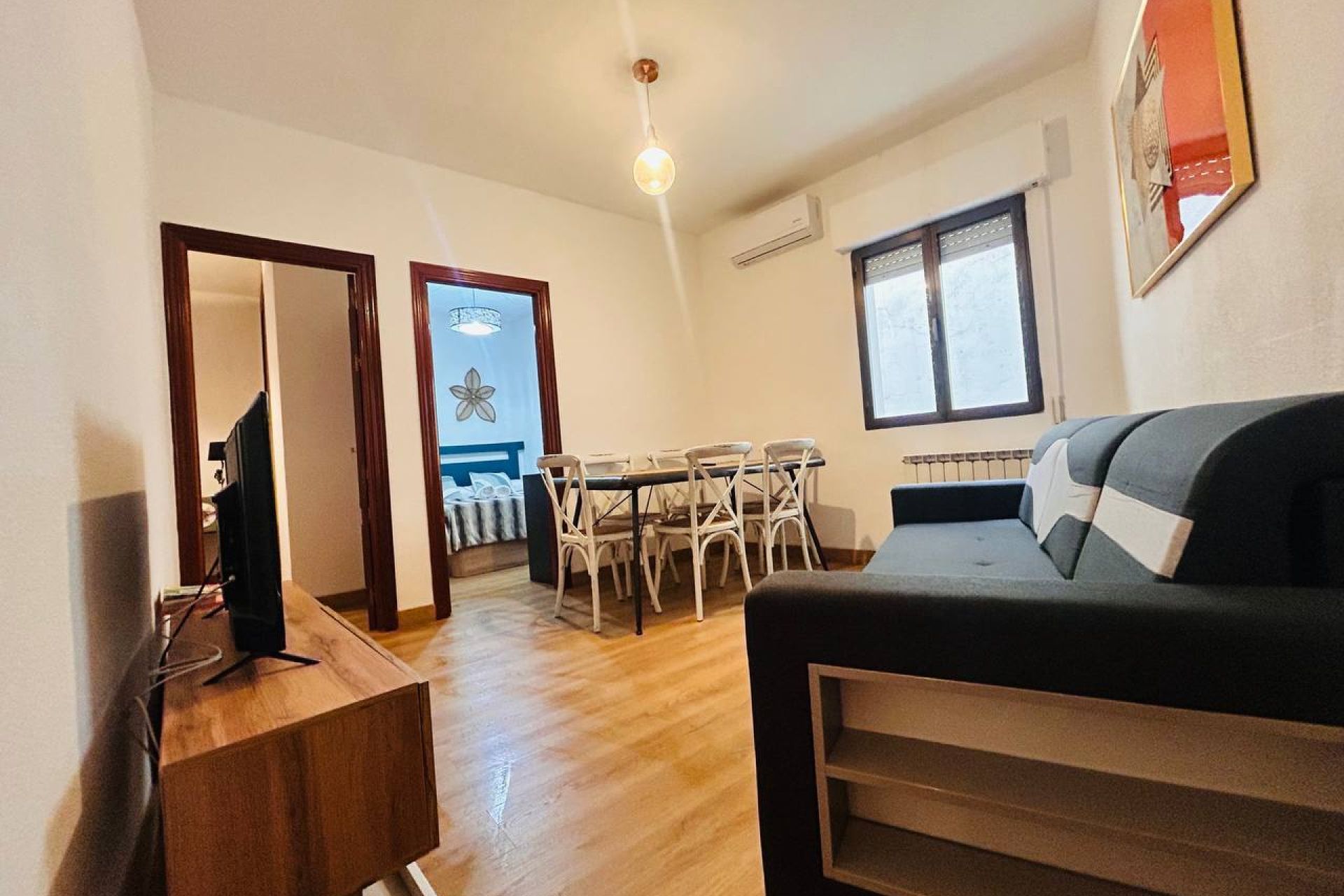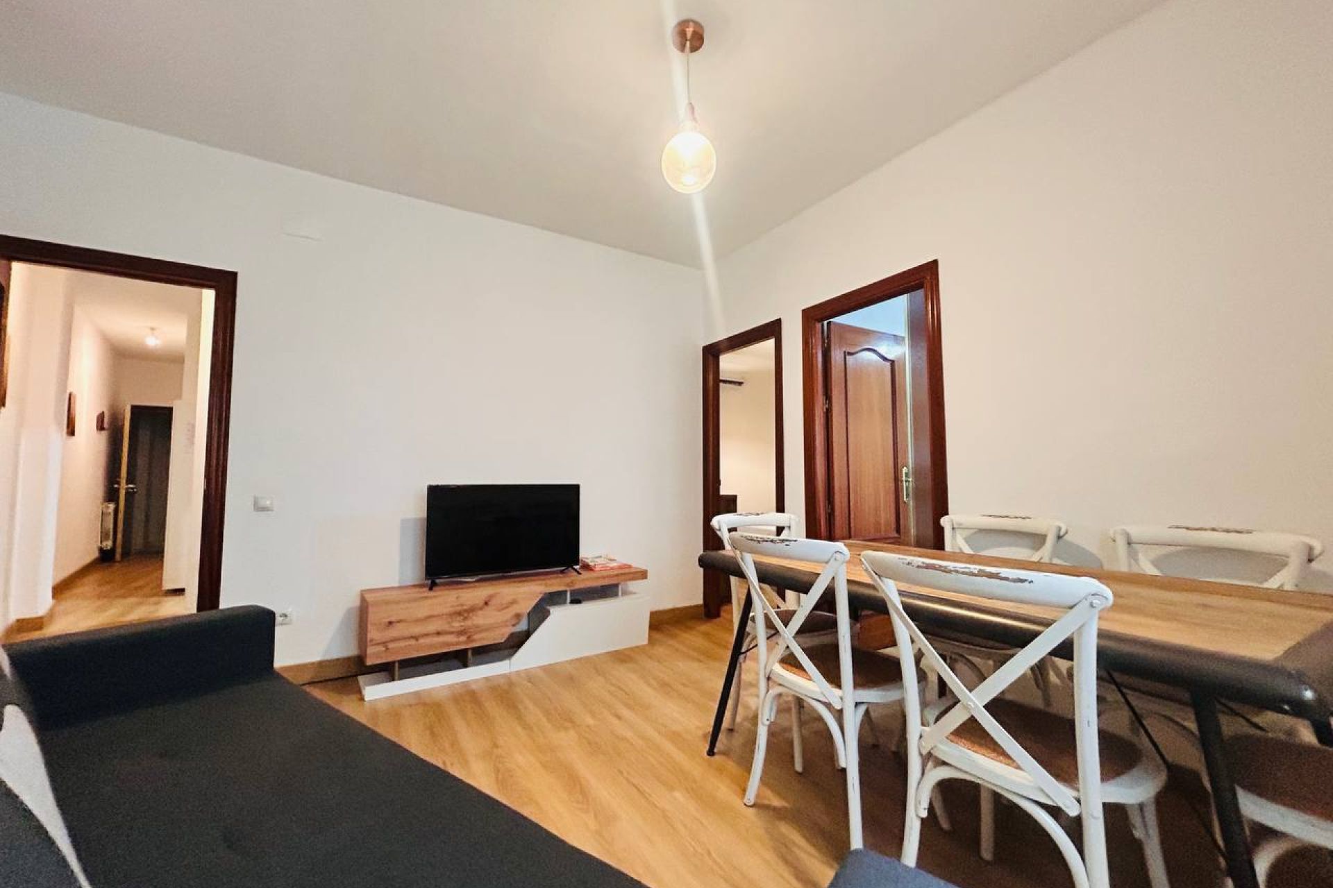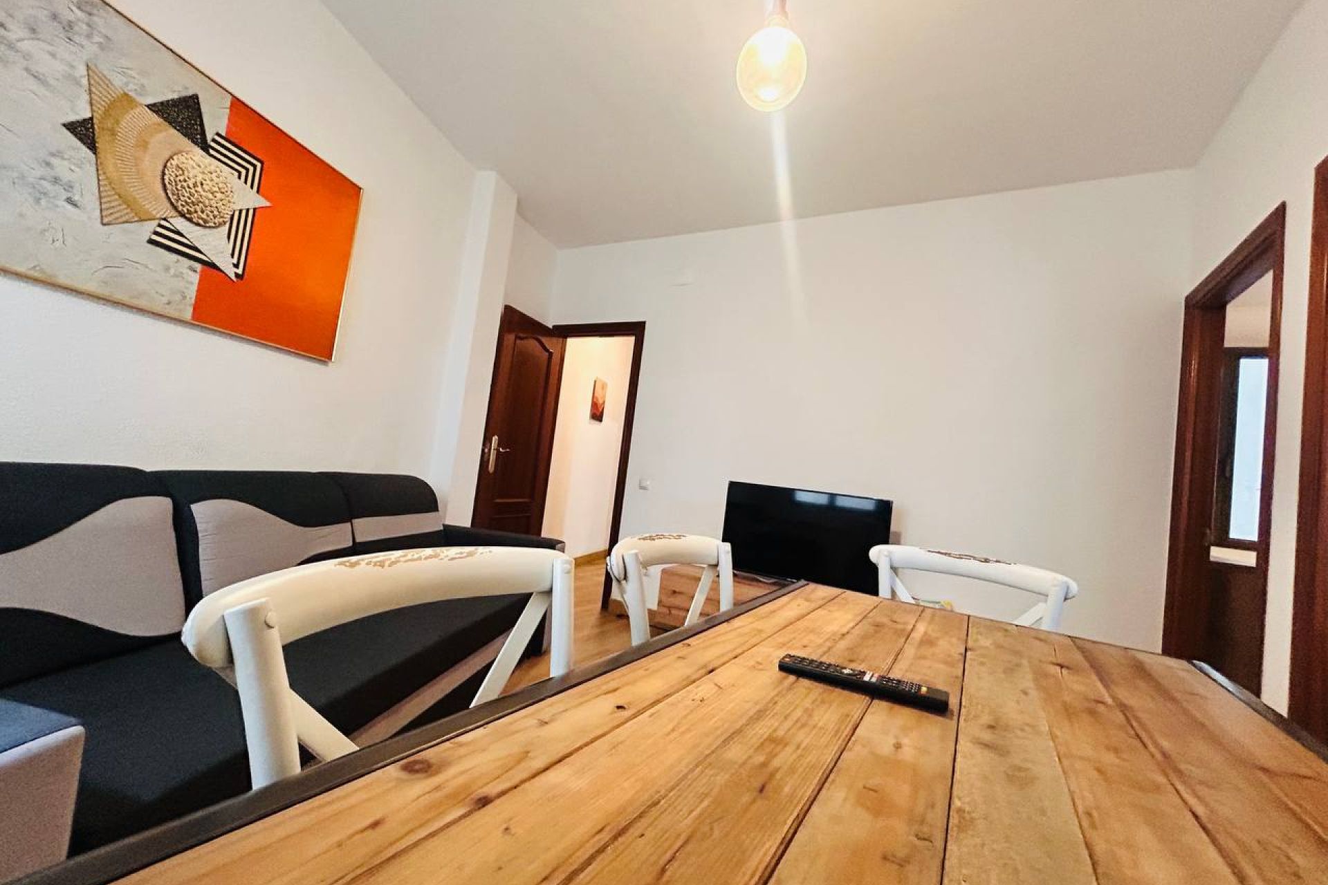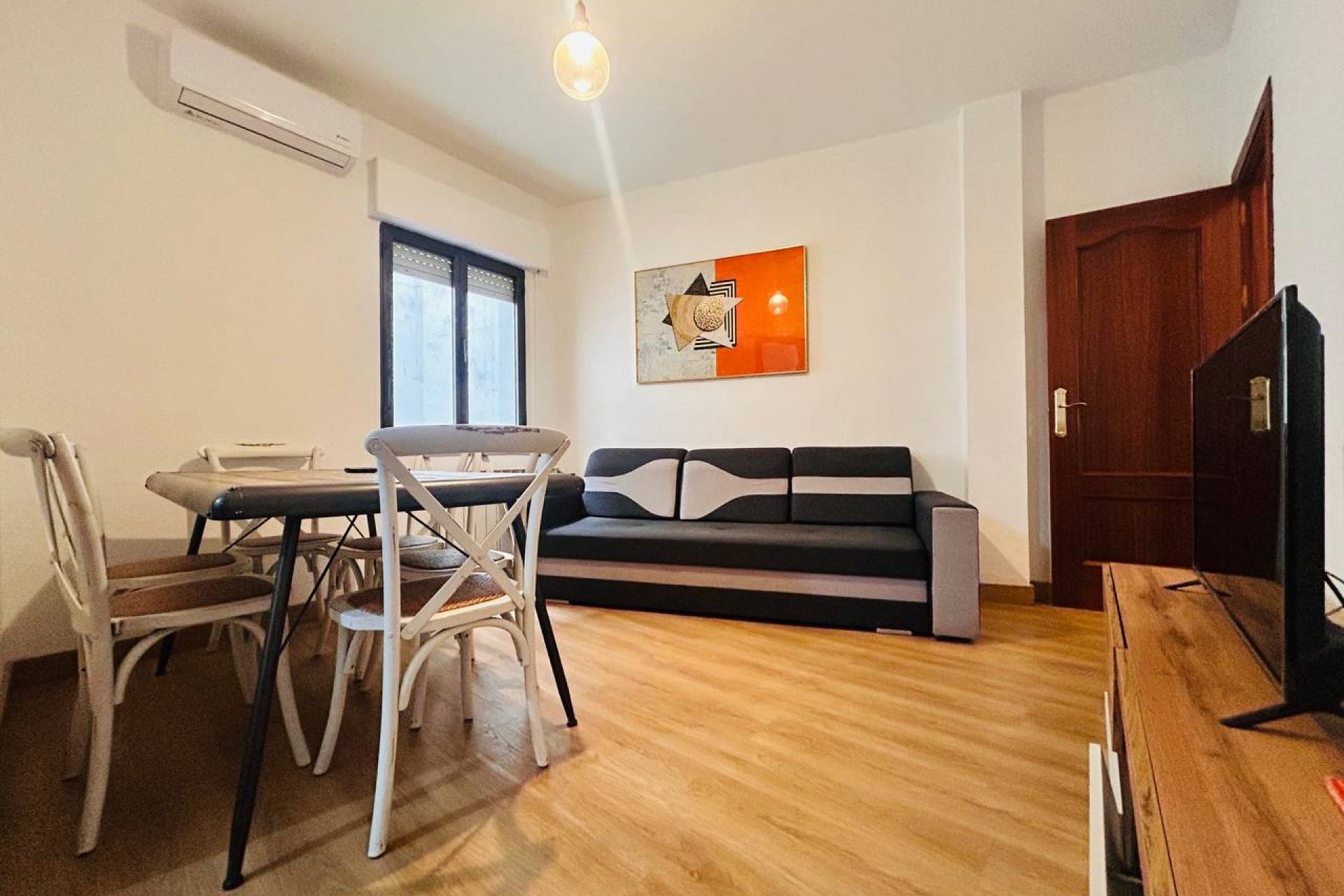 Living-dining room with double sofa bed.